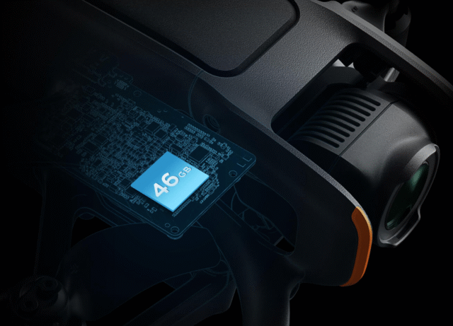 Avata 2 comes equipped with 46GB internal storage, capable of storing approximately 90 minutes of 1080p/60fps video, ensuring you capture the best parts of each flight.